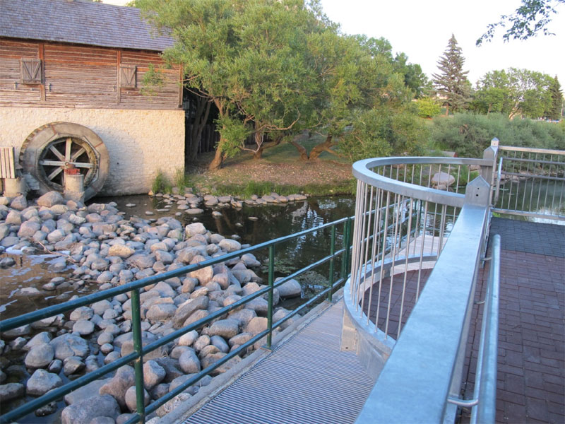 A walkway and access ramps provides an attractive viewing point of the fish ladder, Grant’s Mill and the park environment surrounding Sturgeon Creek as it passes by Grace General Hospital. F. A Roberts & Associates Ltd designed the walkway which is fabricated from galvanized steel with composite walking surface of recycled rubber.